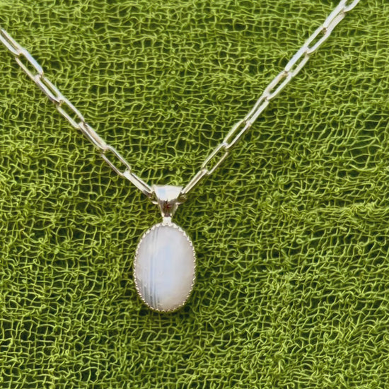 Handmade sterling silver necklace with Moonstone, 16" chain